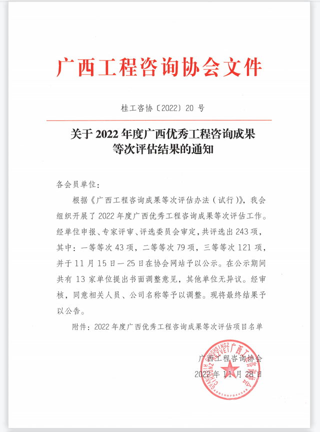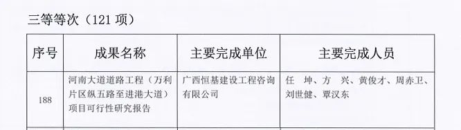 近日,2022年度廣西優(yōu)秀工程咨詢成果獎(jiǎng)獲獎(jiǎng)項(xiàng)目名單揭曉。經(jīng)協(xié)會專家評審,評選委員會審定,廣西恒基建設(shè)工程咨詢有限公司參與的《河南大道道路工程(萬利片區(qū)縱五路至進(jìn)港大道)項(xiàng)目可行性研究報(bào)告》榮獲2022年度廣西優(yōu)秀工程咨詢成果獎(jiǎng)三等獎(jiǎng)。