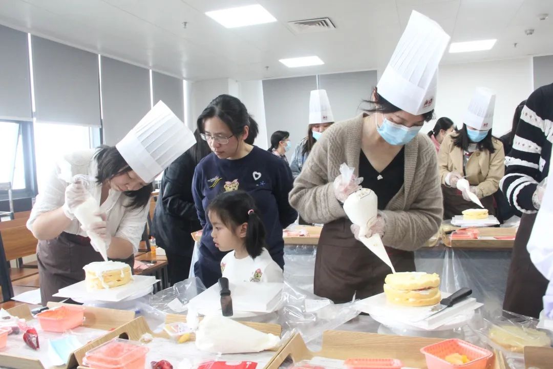 參加活動女員工們在老師的指導(dǎo)下,一起學(xué)習(xí)制作蛋糕裱花的方法和技巧,涂抹奶油、裱花裝飾,擺放水果,結(jié)合自己的想法精心裝點(diǎn)自己的創(chuàng)意蛋糕,蛋糕陣陣飄香,歡樂連綿不斷。在一片歡聲笑語中,大家完成了蛋糕的制作,為節(jié)日呈上最甜蜜的祝福。