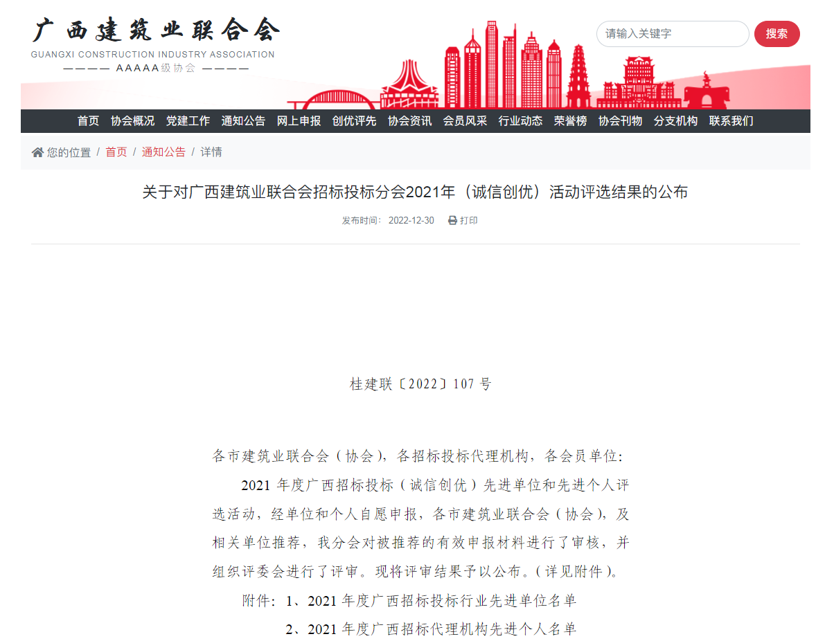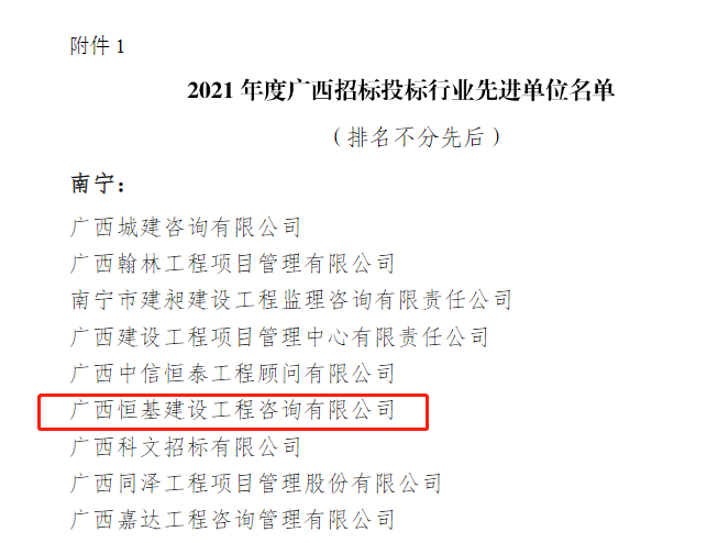 3月15日,廣西建筑業(yè)聯(lián)合會召開招標(biāo)投標(biāo)分會二屆四次會員代表大會,會上表彰了2021年度廣西招標(biāo)投標(biāo)行業(yè)先進單位以及2021年度廣西招標(biāo)代理機構(gòu)先進個人。廣西恒基建設(shè)工程咨詢有限公司在眾多參評單位中脫穎而出,榮獲“2021年度廣西招標(biāo)投標(biāo)行業(yè)先進單位”;同時,公司石愛娟、周赤衛(wèi)、覃漢東、劉世健、陸秒、任坤、黃俊才、方興8人獲評“2021年度廣西招標(biāo)代理機構(gòu)先進個人”稱號。