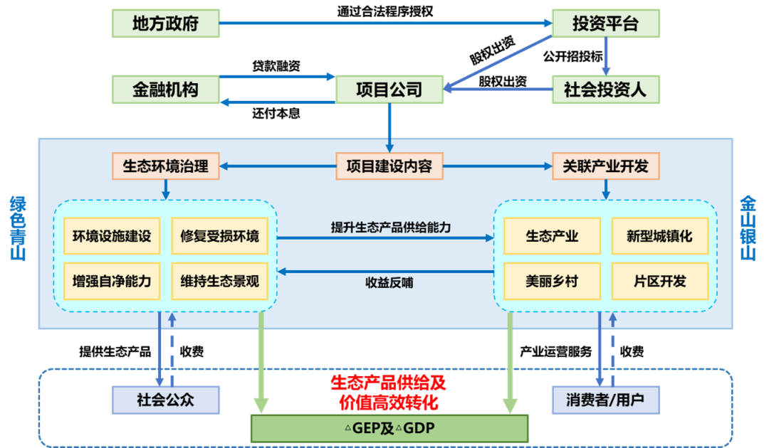 《關(guān)于推薦生態(tài)環(huán)境導(dǎo)向的開發(fā)模式試點(diǎn)項(xiàng)目的通知》 (環(huán)辦科財(cái)函〔2020〕489號(hào))中提到:EOD模式是以生態(tài)文明建設(shè)為引領(lǐng),以可持續(xù)發(fā)展為目標(biāo),以生態(tài)保護(hù)環(huán)境治理為基礎(chǔ),以特色產(chǎn)業(yè)運(yùn)營為支撐,以區(qū)域綜合開發(fā)為載體,采取產(chǎn)業(yè)鏈延伸、聯(lián)合經(jīng)營、組合開發(fā)等方式,推動(dòng)公益性較強(qiáng)、收益性差的生態(tài)環(huán)境治理項(xiàng)目與收益較好的關(guān)聯(lián)產(chǎn)業(yè)有效融合,統(tǒng)籌推進(jìn),一體化實(shí)施,將生態(tài)環(huán)境治理帶來的經(jīng)濟(jì)價(jià)值內(nèi)部化,創(chuàng)新性的項(xiàng)目組織實(shí)施方式。