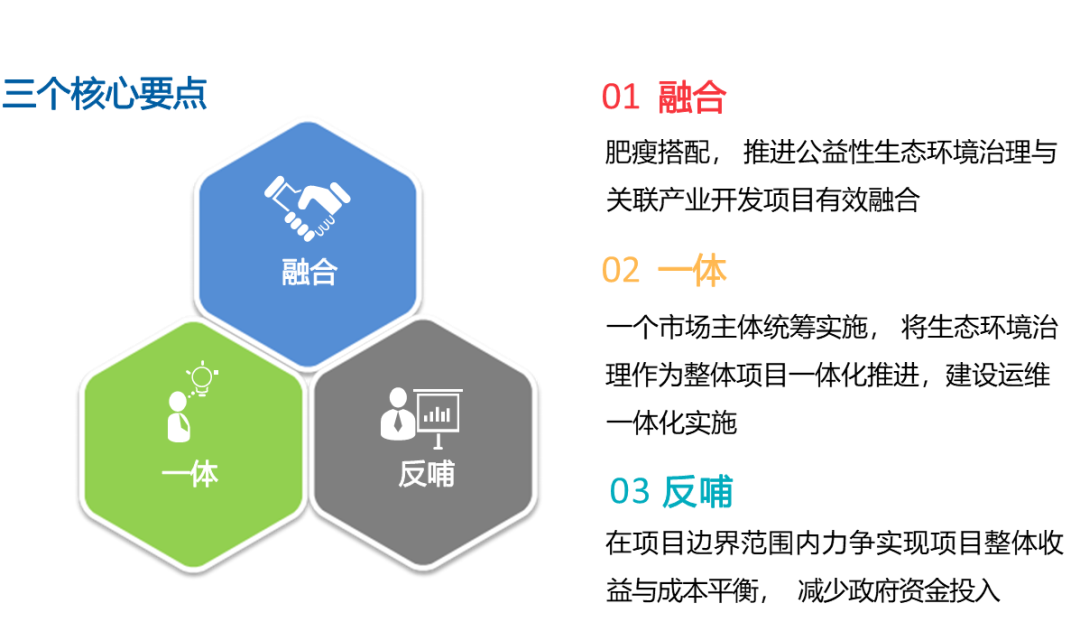 4)值得注意的是流域水環(huán)境綜合治理項(xiàng)目(流域內(nèi)涉及的水污染,土壤污染,農(nóng)業(yè)面源,礦山修復(fù)都可整合放在EOD環(huán)境治理工程里,不限制方向);