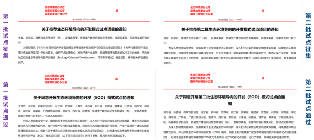 2021年,生態(tài)環(huán)境部批復(fù)了第一批36個(gè)試點(diǎn)項(xiàng)目,2022年又批復(fù)了58個(gè)試點(diǎn)項(xiàng)目,接下來,EOD模式試點(diǎn)項(xiàng)目將進(jìn)入常態(tài)化申報(bào)階段。