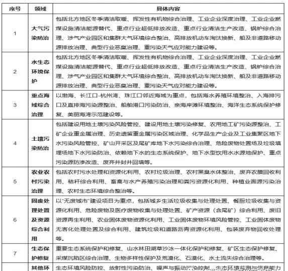 根據(jù)環(huán)辦科財〔2022〕6號《生態(tài)環(huán)保金融支持項目儲備庫入庫指南(試行)》文件精神,入庫項目的環(huán)境治理內(nèi)容應(yīng)屬于以下八個領(lǐng)域:大氣污染防治、水生態(tài)環(huán)境保護(hù)、重點海域綜合治理、土壤污染防治、農(nóng)業(yè)農(nóng)村污染治理、固廢處置及資源綜合利用、生態(tài)保護(hù)修復(fù)、其他環(huán)境治理。