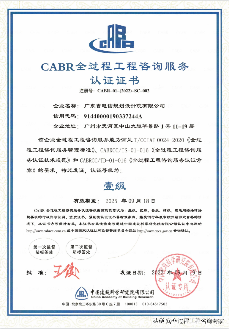 為了使全過程工程咨詢能夠為建筑企業(yè)提供完整的技術咨詢服務,有必要積極配合國家的“三放”(放活市場調(diào)節(jié)機制、放開技術創(chuàng)新活力、放寬資質(zhì)資格限制)職能,加強管理業(yè)務發(fā)展,創(chuàng)建全過程工程咨詢服務的標準化系統(tǒng),改善業(yè)務顧問的整體技術工作,由中國建筑科學研究院(以下簡稱“中國建研院”)認證中心開展新“出爐”的CABR全過程工程咨詢服務認證工作,為相關問題的解決提供了新方案、新路徑。