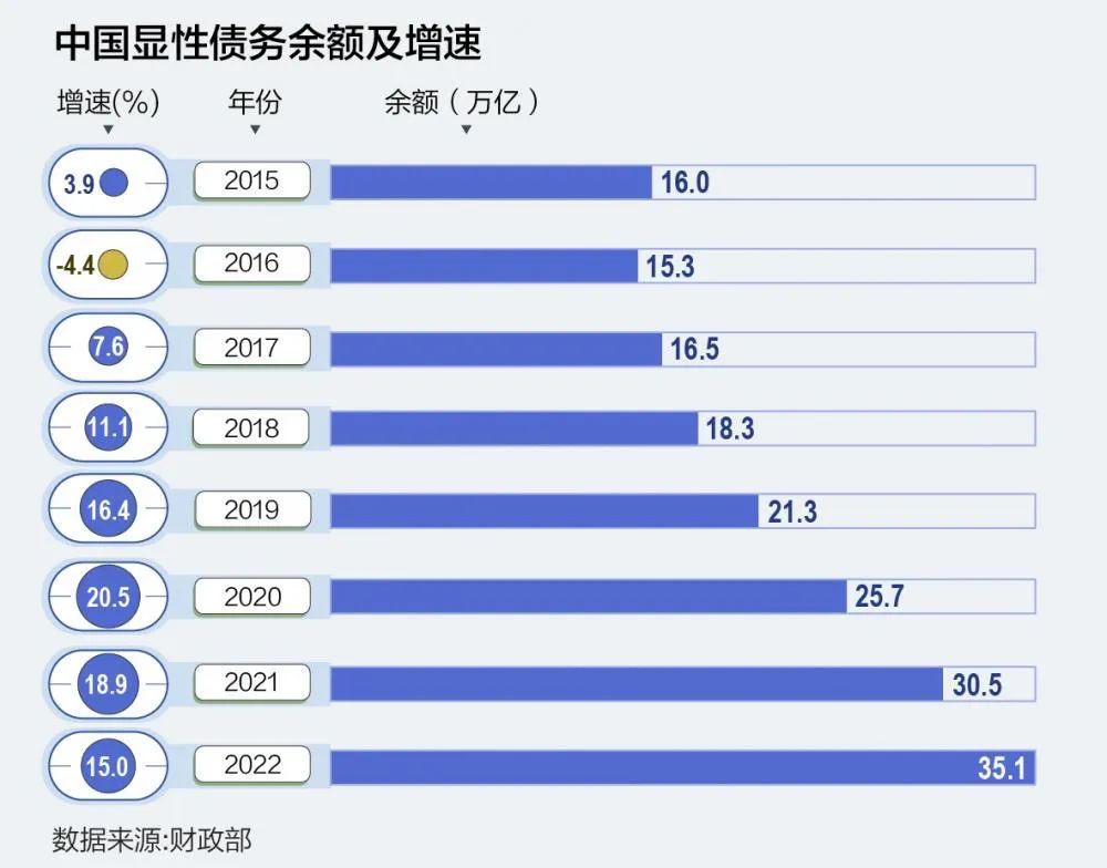 近期公布的《關于2022年中央和地方預算執(zhí)行情況與2023年中央和地方預算草案的報告》顯示,截至2022年末地方政府顯性債務余額約35.1萬億。這一數(shù)額相比2014年末增長了127%,增長相對較快。