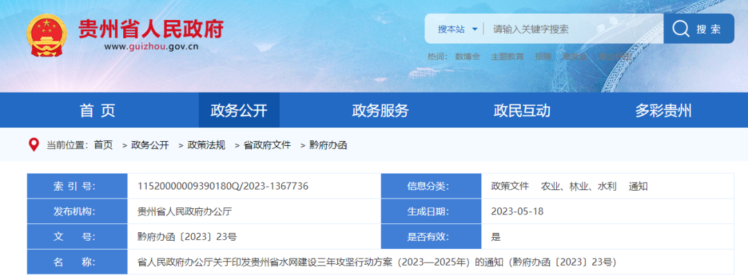 貴州省人民政府辦公廳關(guān)于印發(fā)貴州省水網(wǎng)建設(shè)三年攻堅行動方案(2023—2025年)的通知