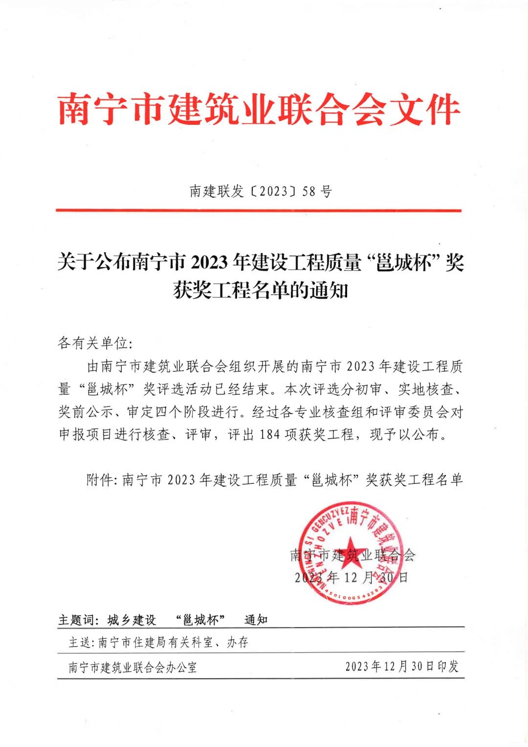 南寧市建設(shè)工程質(zhì)量“邕城杯”獎(jiǎng)是南寧市建設(shè)工程質(zhì)量的最高榮譽(yù)獎(jiǎng),獲獎(jiǎng)的建設(shè)工程施工質(zhì)量達(dá)到南寧市的一流水平。恒基咨詢將再接再厲,秉持科學(xué)嚴(yán)謹(jǐn)、精益求精的態(tài)度,不斷提升項(xiàng)目質(zhì)量管理與服務(wù)水平,用匠心打造更多精品工程。