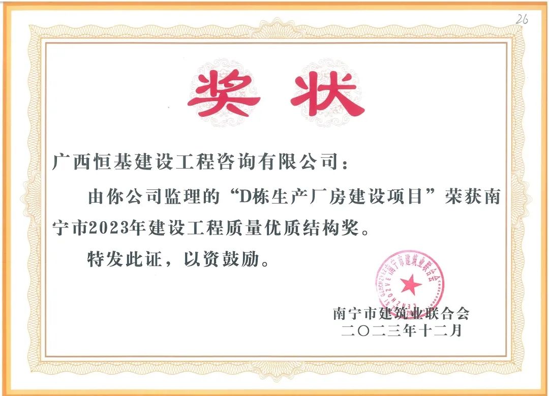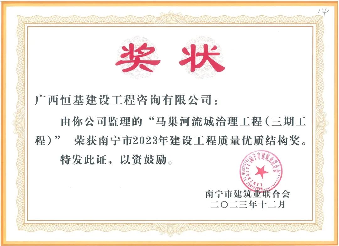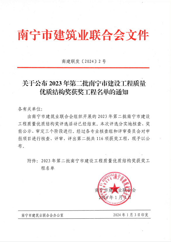 再添7項(xiàng)南寧市建設(shè)工程質(zhì)量?jī)?yōu)質(zhì)結(jié)構(gòu)獎(jiǎng)!