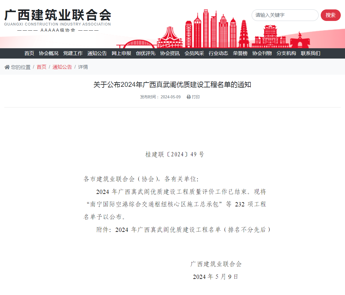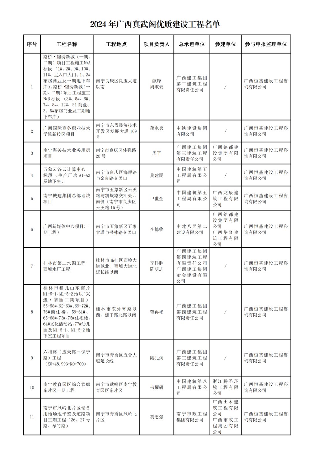 近日,廣西建筑業(yè)聯(lián)合會公布了2024年廣西真武閣優(yōu)質(zhì)建設(shè)工程名單,恒基咨詢11個(gè)項(xiàng)目榜上有名。