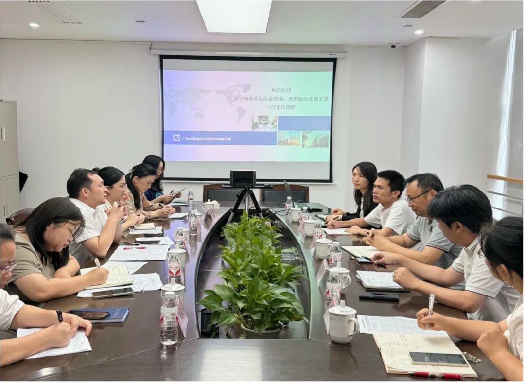 6月24日,南寧市青秀區(qū)委常委、常務(wù)副區(qū)長(zhǎng)邢義波與青秀區(qū)統(tǒng)計(jì)局、青秀區(qū)住房和城鄉(xiāng)建設(shè)局、南湖街道等相關(guān)領(lǐng)導(dǎo)赴恒基咨詢公司走訪調(diào)研。恒基咨詢董事長(zhǎng)周赤衛(wèi),總經(jīng)理黃俊才、常務(wù)副總經(jīng)理任坤、財(cái)務(wù)總監(jiān)吉蘭芳、總經(jīng)理助理劉世健出席座談。