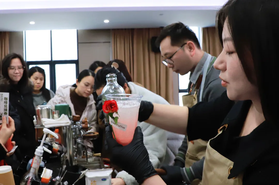 隨后,DIY制作環(huán)節(jié)將活動推向高潮。女職工們在咖啡師的指導(dǎo)下,親自上手研磨咖啡豆、沖泡咖啡、調(diào)氣泡水。雖然手法生疏,但那份專注與熱情卻感染了每一個人。在輕松愉快的氛圍中,一杯杯獨具匠心的咖啡、氣泡水作品應(yīng)運而生,每一杯都承載著女職工們的創(chuàng)意與祝福。