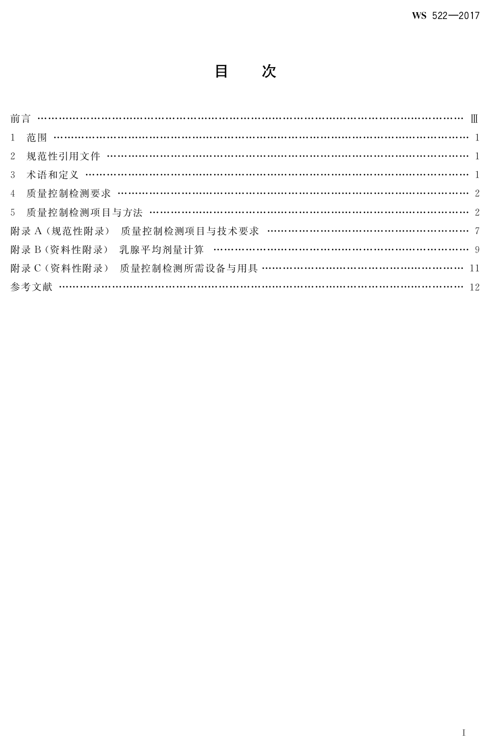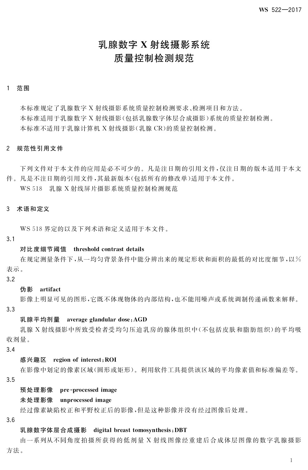 乳腺數(shù)字X射線攝影系統(tǒng)質(zhì)量控制檢測規(guī)范 WS 522-2017