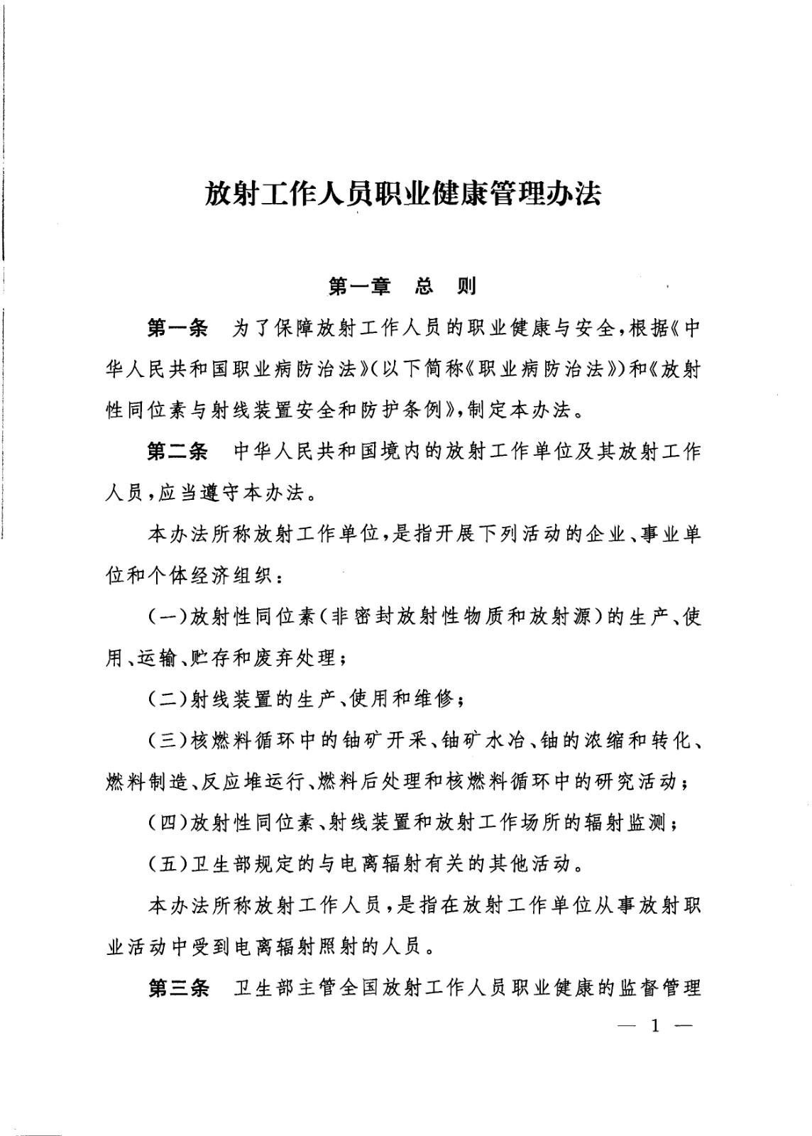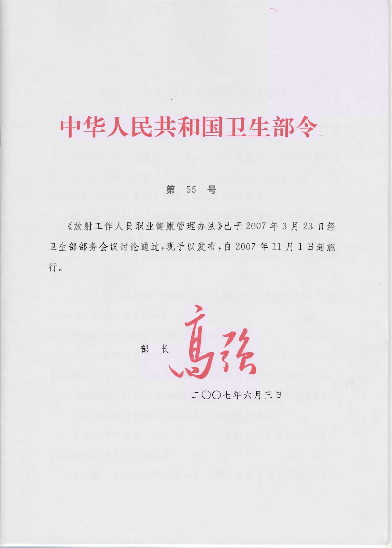 放射工作人員職業(yè)健康管理辦法(衛(wèi)生部令第55號)
