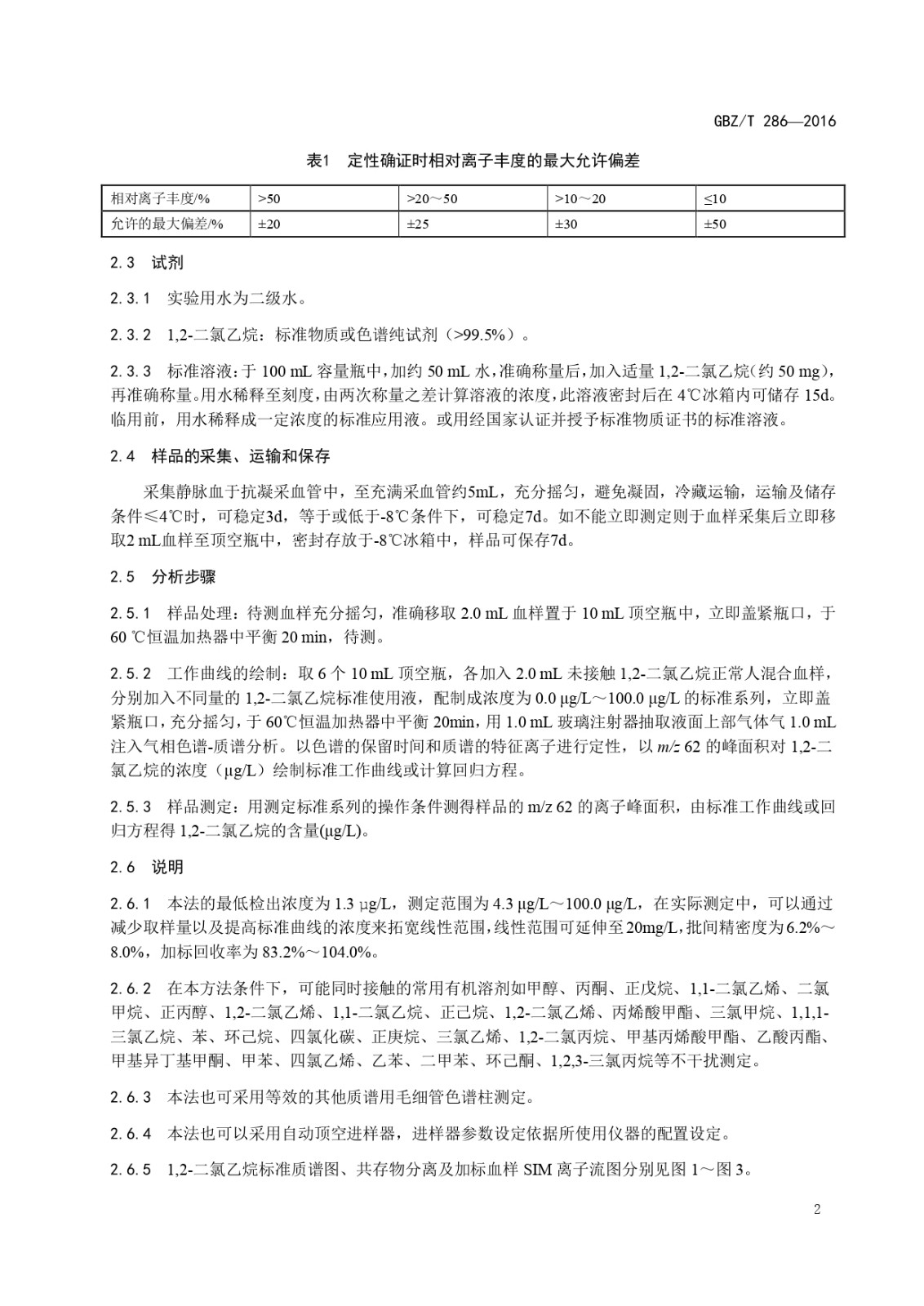 GBZT 286-2016 血中1,2—二氯乙烷的氣相色譜—質(zhì)譜測定方法