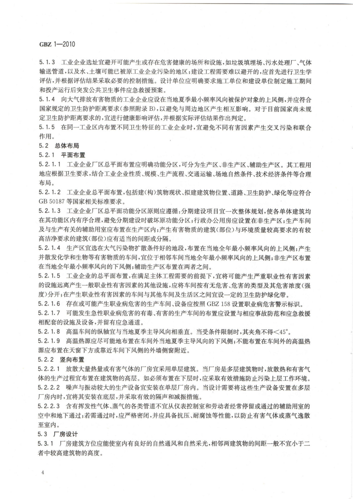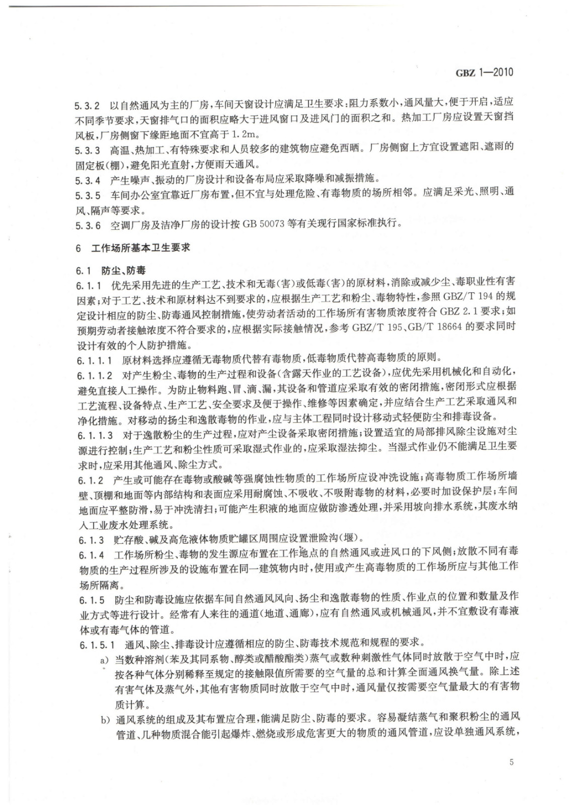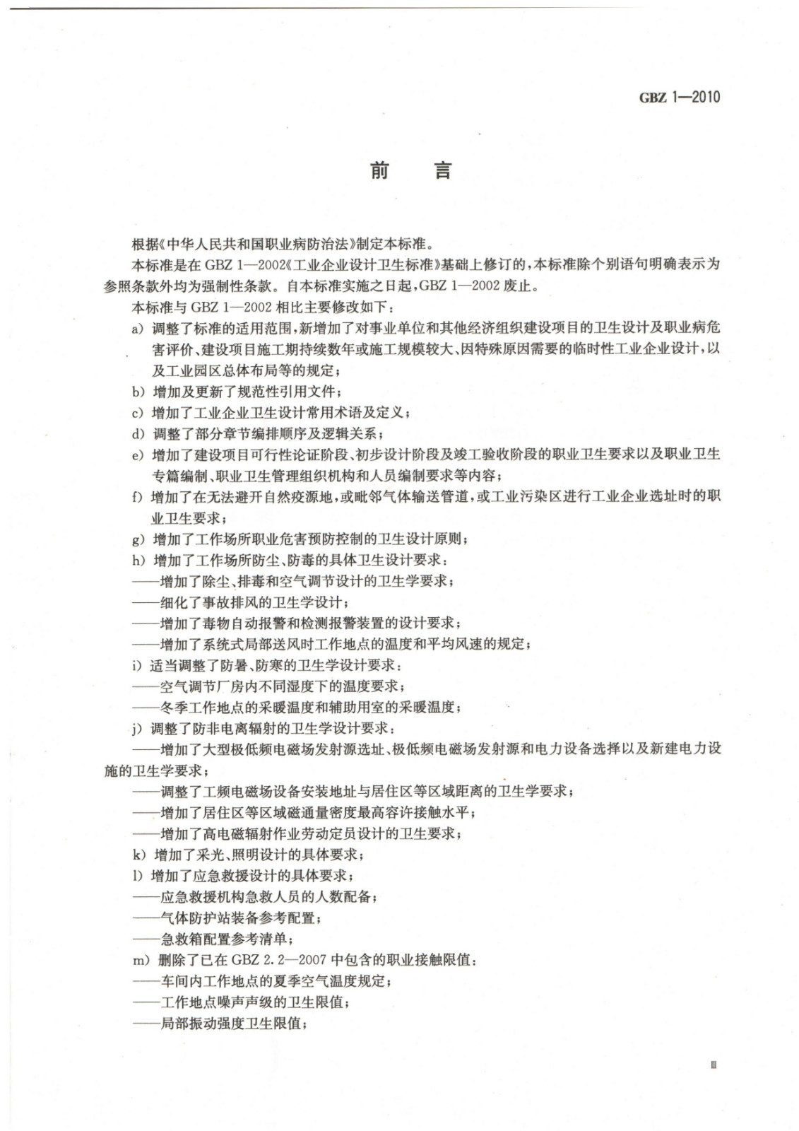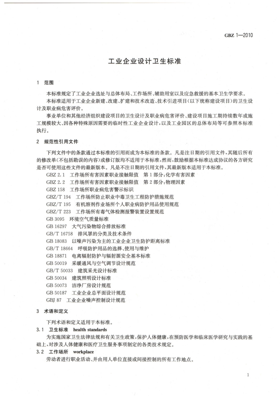 工業(yè)企業(yè)設(shè)計(jì)衛(wèi)生標(biāo)準(zhǔn)(GBZ 1-2010)