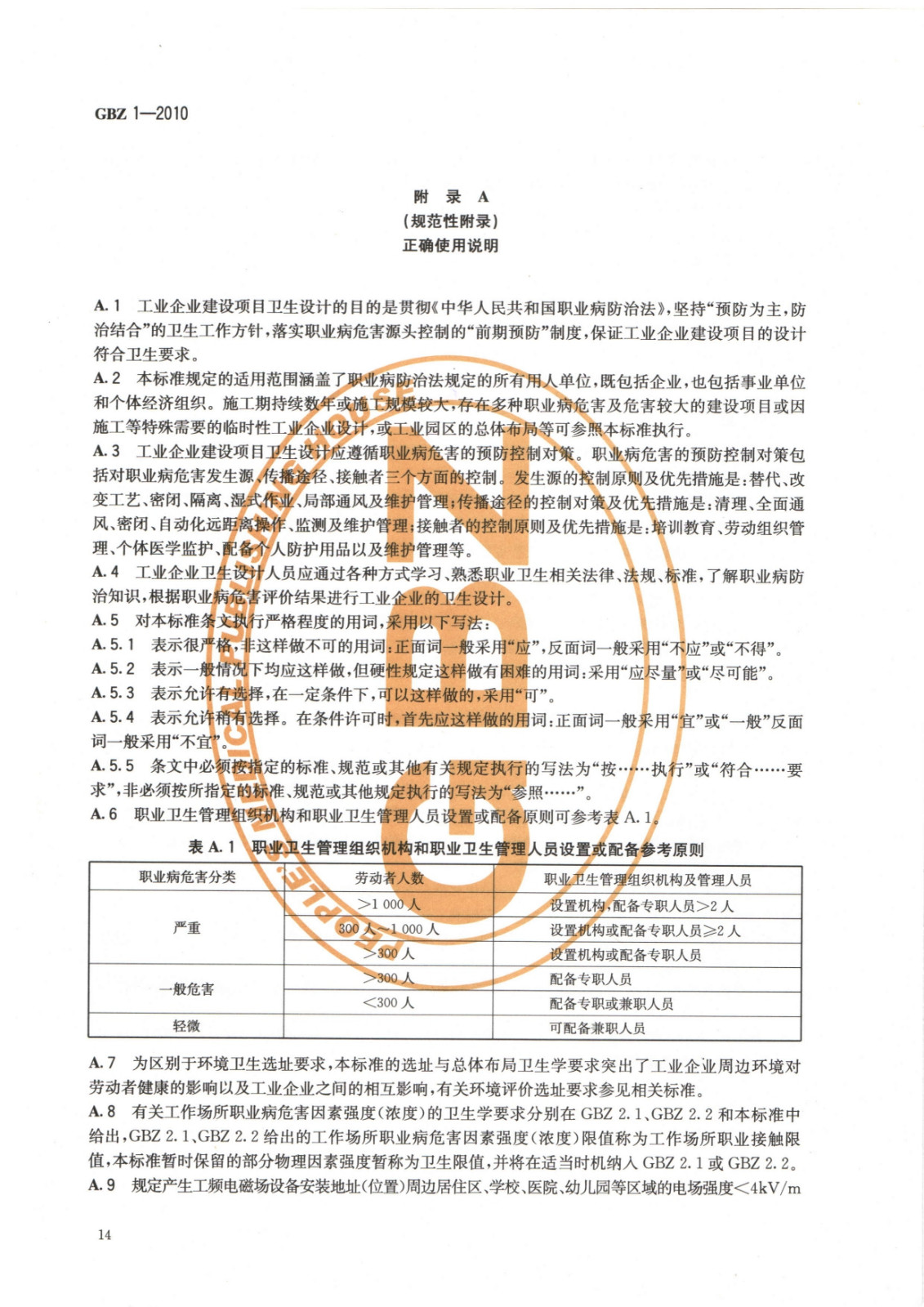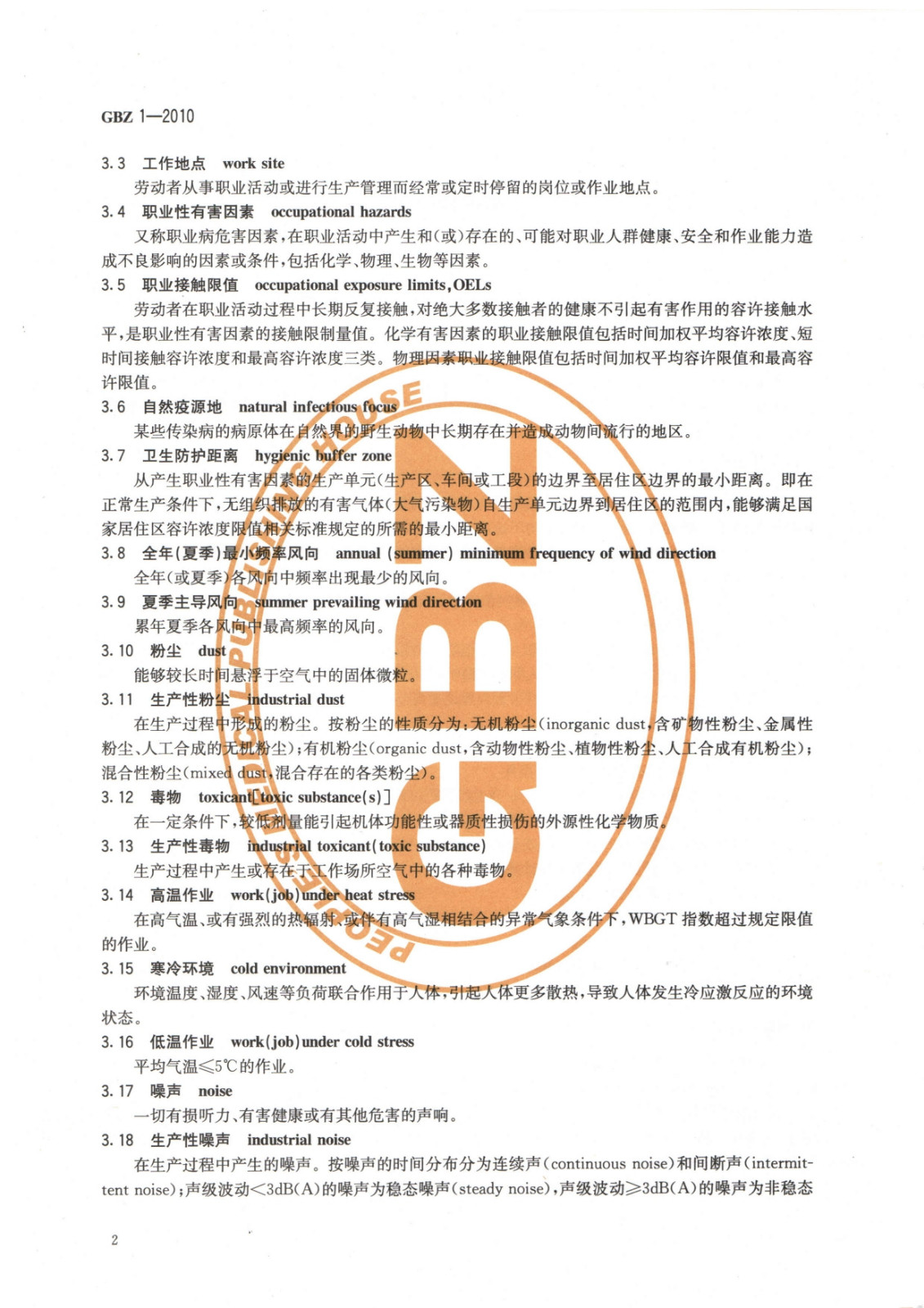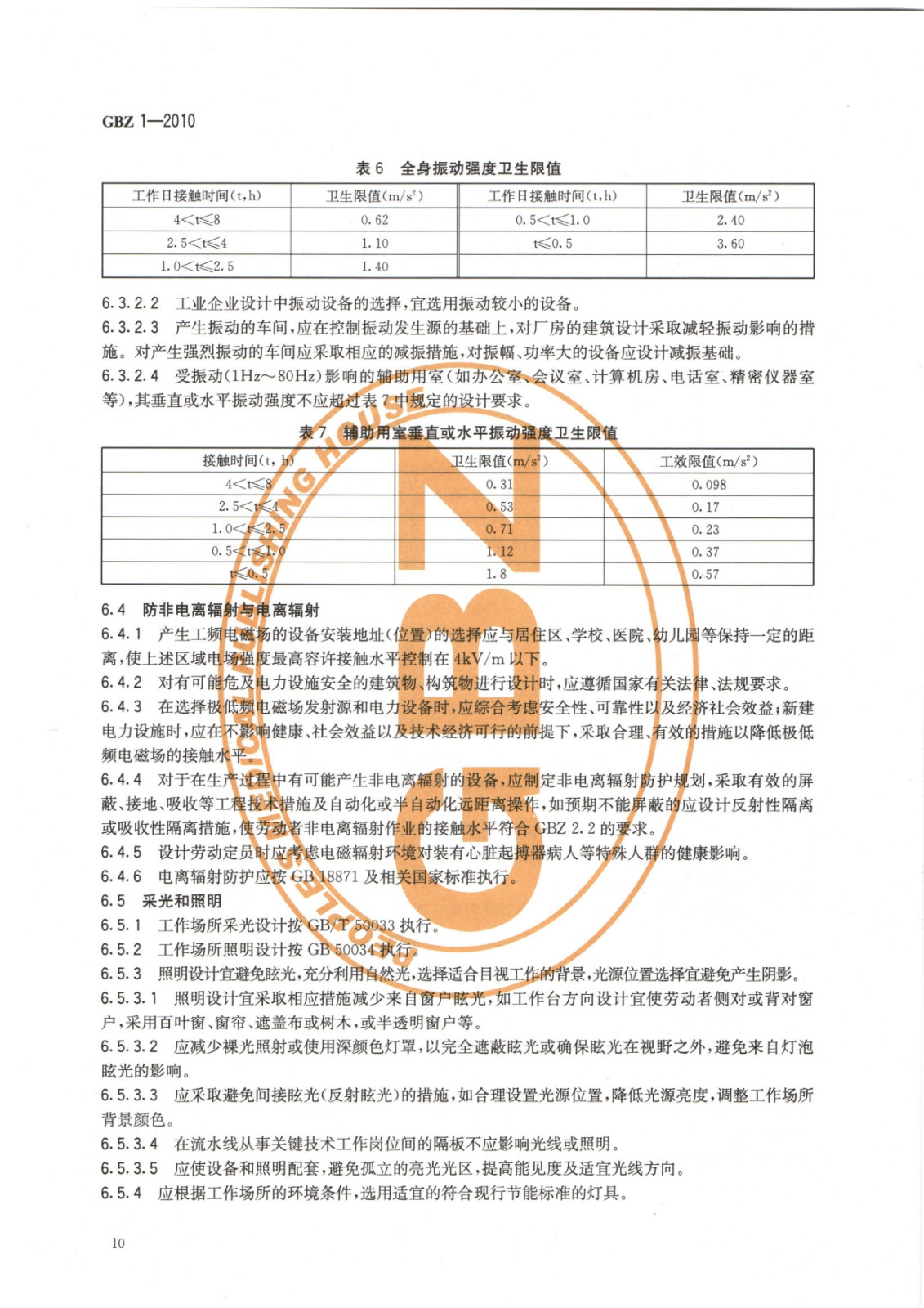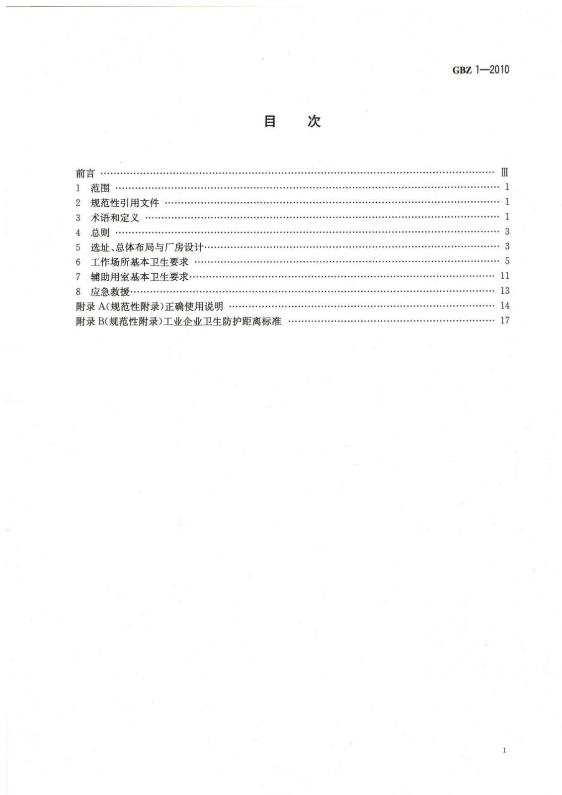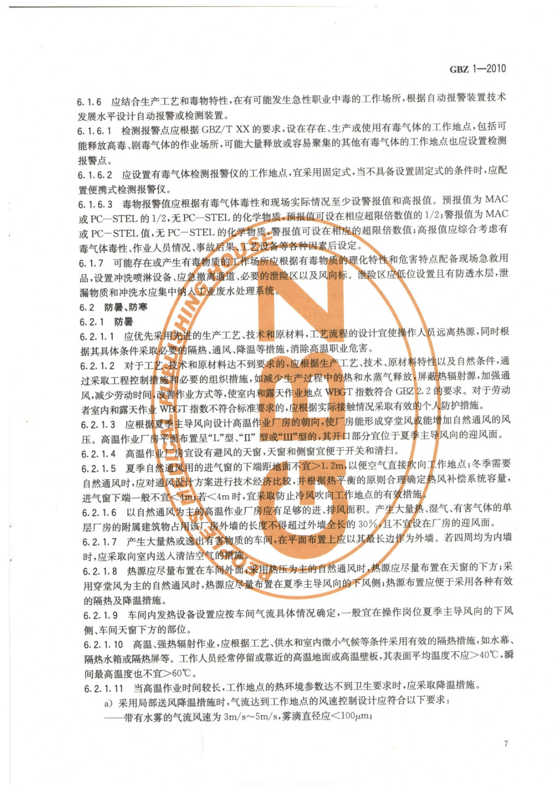 工業(yè)企業(yè)設(shè)計(jì)衛(wèi)生標(biāo)準(zhǔn)(GBZ 1-2010)