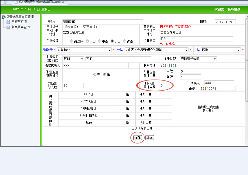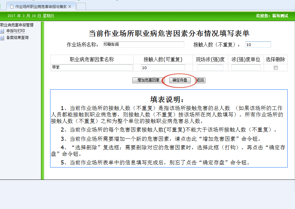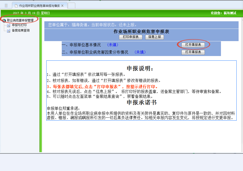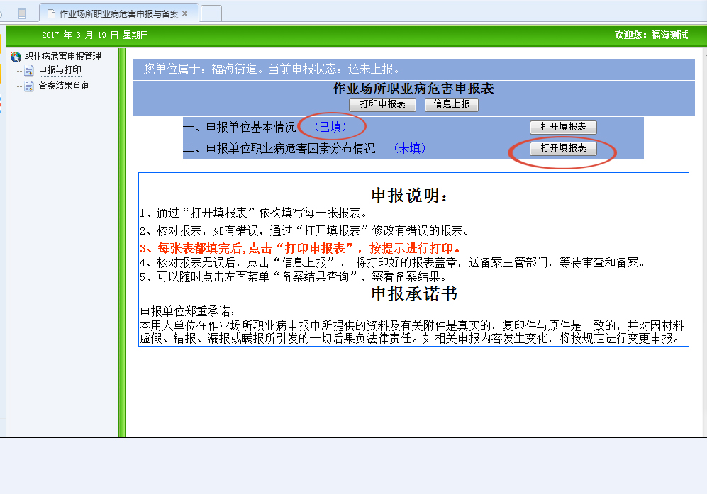 6、備案。所需資料:打印申報(bào)表并加蓋公章、工作場(chǎng)所檢測(cè)報(bào)告。