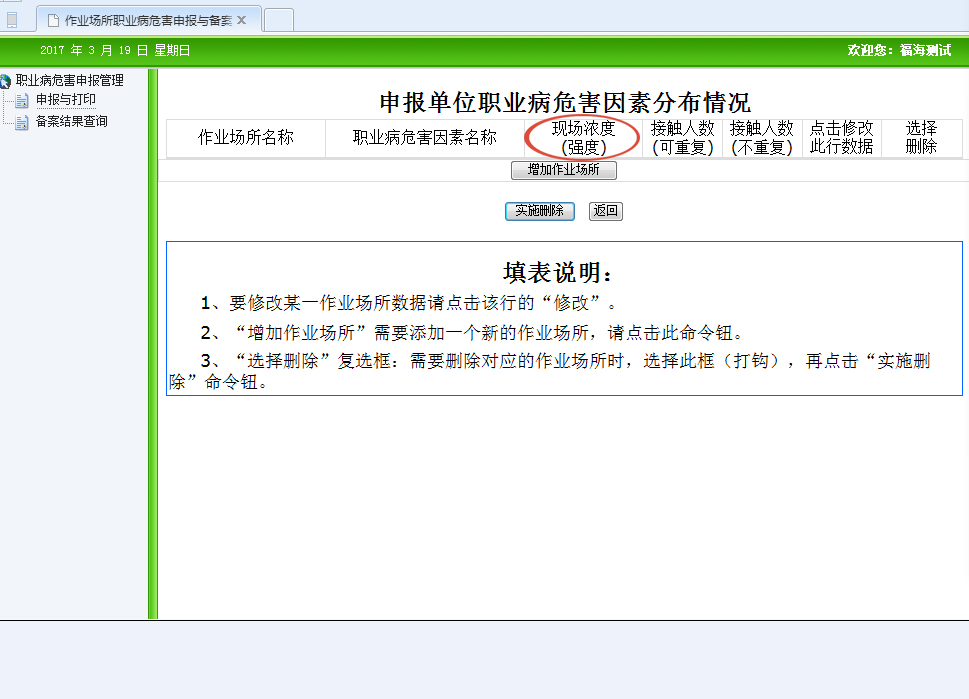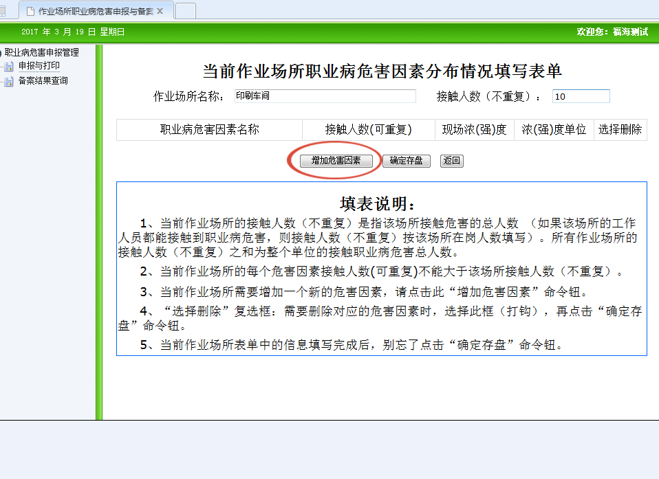 4、填寫“申報(bào)單位職業(yè)病危害因素分布情況”